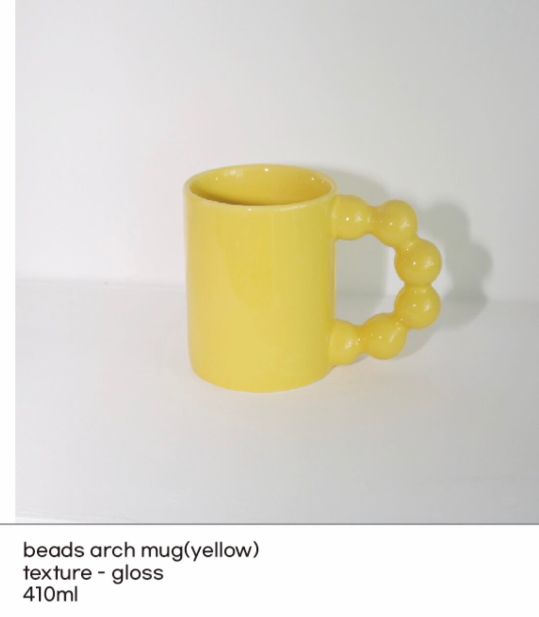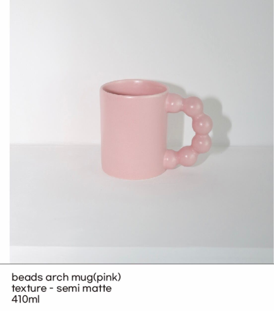 グリップ感の良い410ml容量のビーズアーチ型マグカップです。